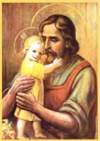 Bild in Postkartengröße, bei dem der hl. Josef mit dem Jesuskind in den Armen abgebildet ist. Die Rückseite der Karte ist leer.