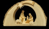 | | Holzgrotte mit Hl. FamilieEin echter Hingucker: Liebliche Hl. Familie aus Holz ausgefräst in einer Rindengrotte, mit zwei kleinen Schäfchen. Darüber strahlt der Weihnachtsstern. Jedes Stück ein Unikat, da die Rindengrotte variiert.