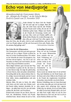 | | Echo 462 Dezember 2025Das Echo von Medjugorje ist ein monatlich erscheinendes Faltblatt. Es enthält jeweils die aktuelle Monatsbotschaft der Muttergottes von Medjugorje, einen Kurzkommentar zur Botschaft sowie diverse Termine bzgl. Wallfahrten nach Medjugorje, Gebetstreffen, Einkehrtage und Vorträge. Die anfallenden Kosten werden durch die Spendenbeiträge der Abonnenten gedeckt.