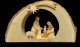 Ein echter Hingucker: Liebliche Hl. Familie aus Holz ausgefräst in einer Rindengrotte, mit zwei kleinen Schäfchen. Darüber ...