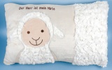 Kuschelweiches Schmusekissen mit der Aufschrift "Der Herr ist mein Hirte" bestickt. Ein Geschenk für Kleinkinder, zum Kuscheln und Schlafen. Material: 100% Polyester. Von Hand waschbar. 40 x 24cm