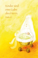 Doppelkarte mit Couvert. Die Karte trägt die Aufschrift "Kinder sind eine Gabe des Herrn." (Psalm 127)