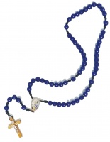 Rosenkranz - St. JosefHandgeknüpfter dunkelblauer Holzperlenrosenkranz (8mm Durchmesser) mit einem Mittelstück auf dem der Hl. Josef abgebildet ist und auf der Rückseite der Hl. Andreas (Kanada). Der Hl. Andreas war ein großer Verehrer des Hl. Josef und gründete das größte Josefsheiligtum in Montreal. Mit schlichtem Holzkreuzchen mit filigranem Korpus.