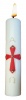 Rote Eikerze, die untere Hälfte ist goldfarben getaucht, mit Motiv: "Lamm Gottes" aus bemaltem Reliefwachs geformt. Diese ...